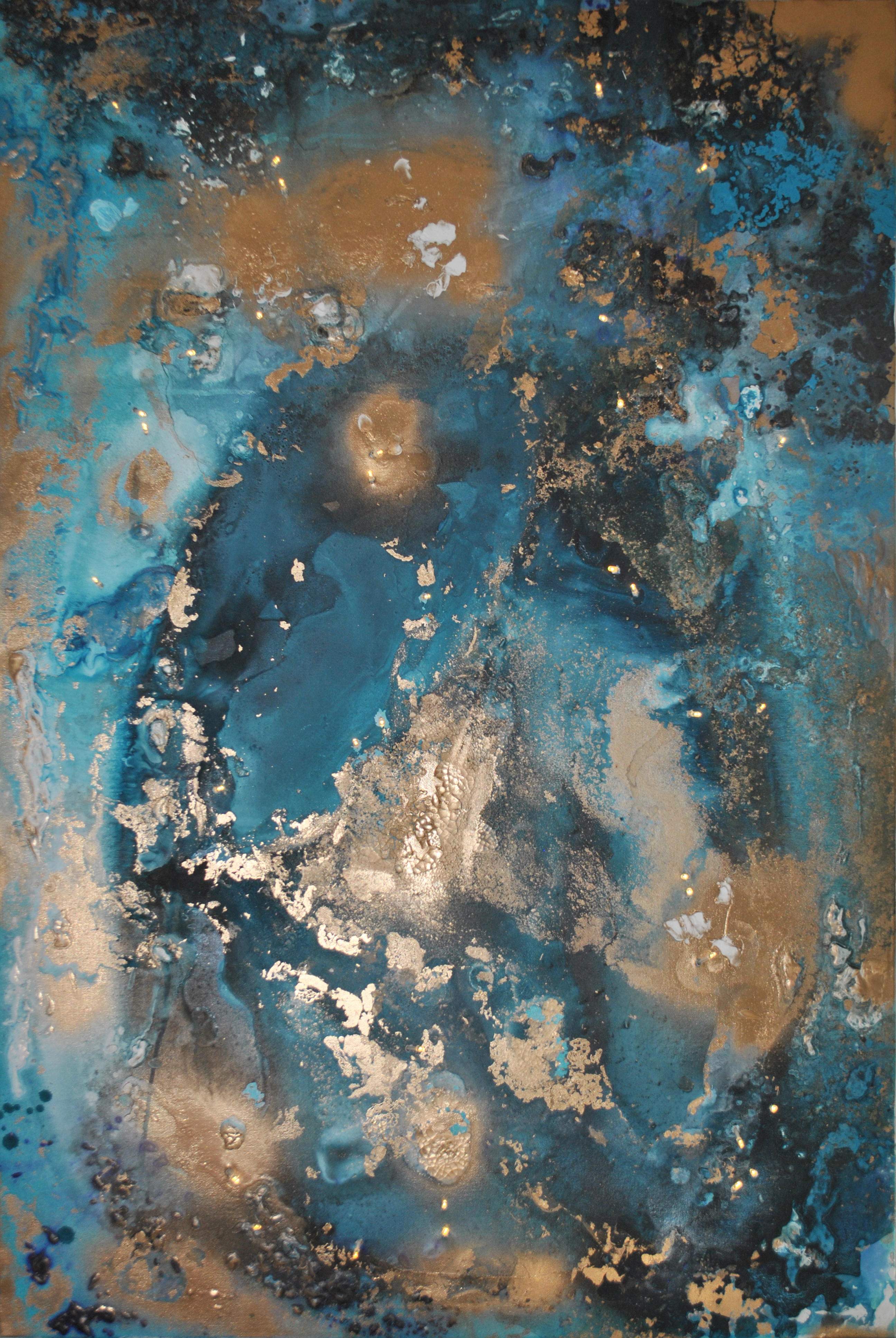 Nature is alive, it breathes, it changes. The ultimate quest of all painters is to breathe life into a painting. The LED lights in the painting aim to do just that. The lights move; the painting is alive. It's an animated form hanging on the wall, staring back at you, embodying the idea of a living amalgam of color and matter.