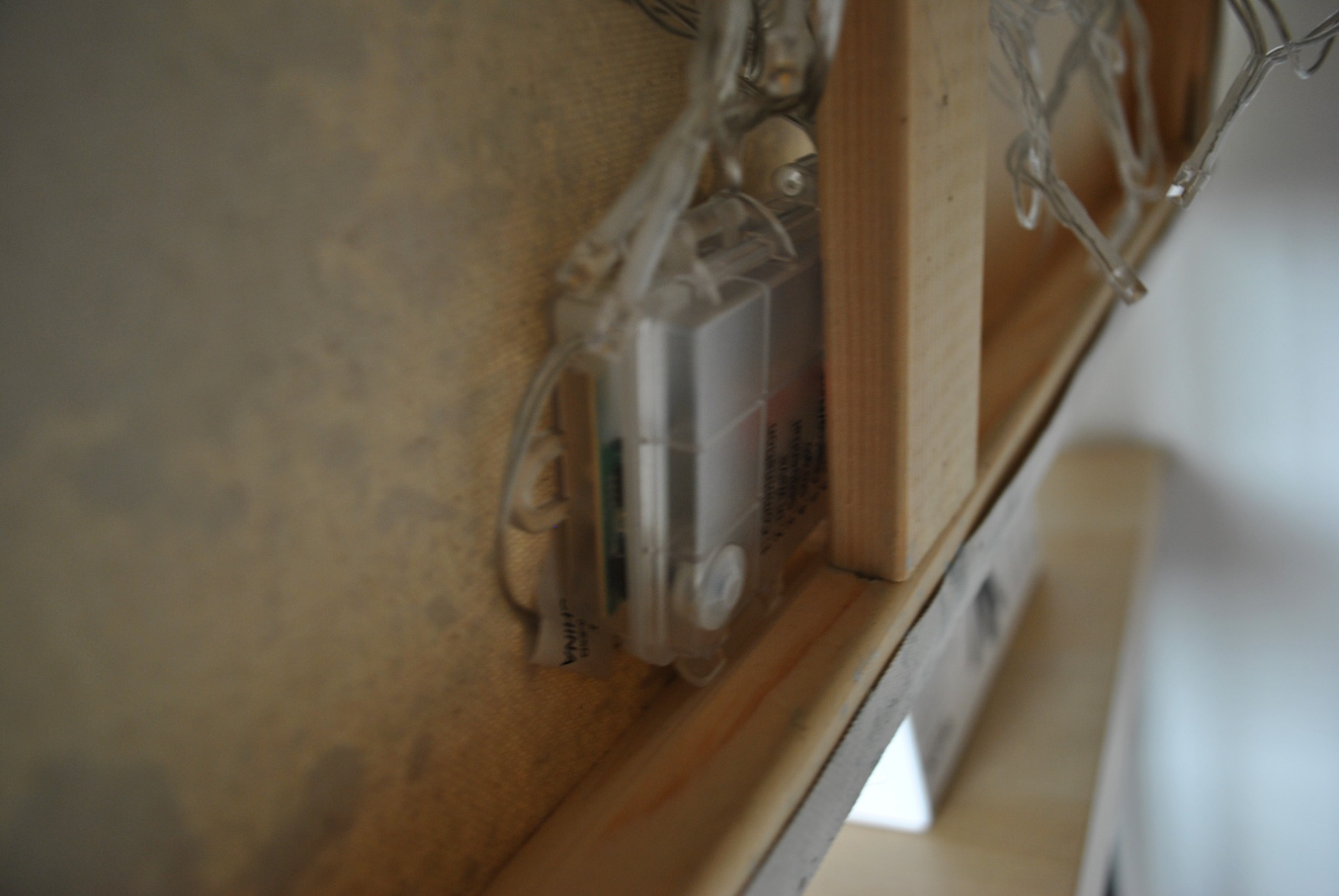 All light paintings are fitted with LED string lights that are powered by three AA batteries.